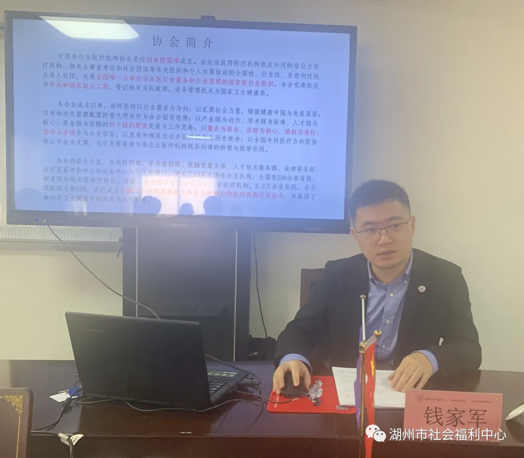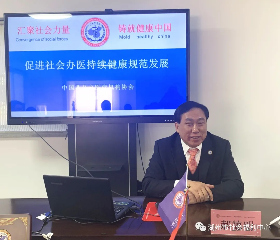徐俊揚(yáng)董事長(zhǎng)陪同郝會(huì)長(zhǎng)一行走訪考察了醫(yī)院綜合樓及園區(qū)的各項(xiàng)設(shè)施,詳細(xì)介紹了福利中心醫(yī)康養(yǎng)服務(wù)和老人們的休養(yǎng)生活情況。 在座談會(huì)上,郝德明會(huì)長(zhǎng)給大家作了以“促進(jìn)社會(huì)辦醫(yī)持續(xù)健康規(guī)范發(fā)展”為主題的精彩講座,他詳細(xì)介紹了目前非公立醫(yī)療機(jī)構(gòu)的行業(yè)發(fā)展現(xiàn)狀,鼓勵(lì)大家努力學(xué)習(xí),不斷提高,堅(jiān)定信仰,更好地服務(wù)社會(huì)大眾。 協(xié)會(huì)醫(yī)療質(zhì)量評(píng)價(jià)中心的錢佳軍向大家介紹了中國(guó)非公立醫(yī)療機(jī)構(gòu)協(xié)會(huì)全國(guó)康復(fù)醫(yī)院50強(qiáng)的評(píng)選標(biāo)準(zhǔn)及相關(guān)要求。