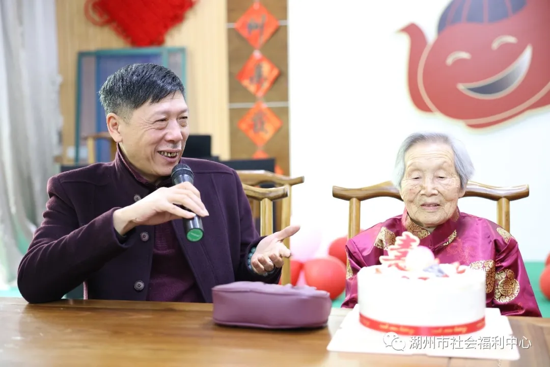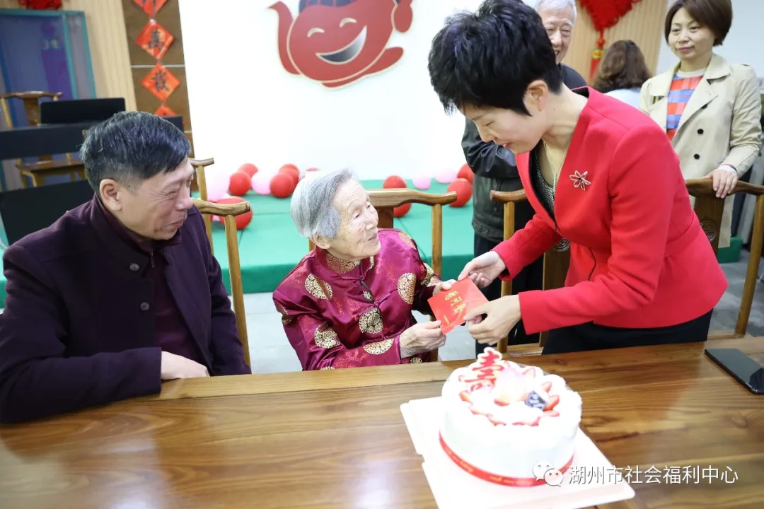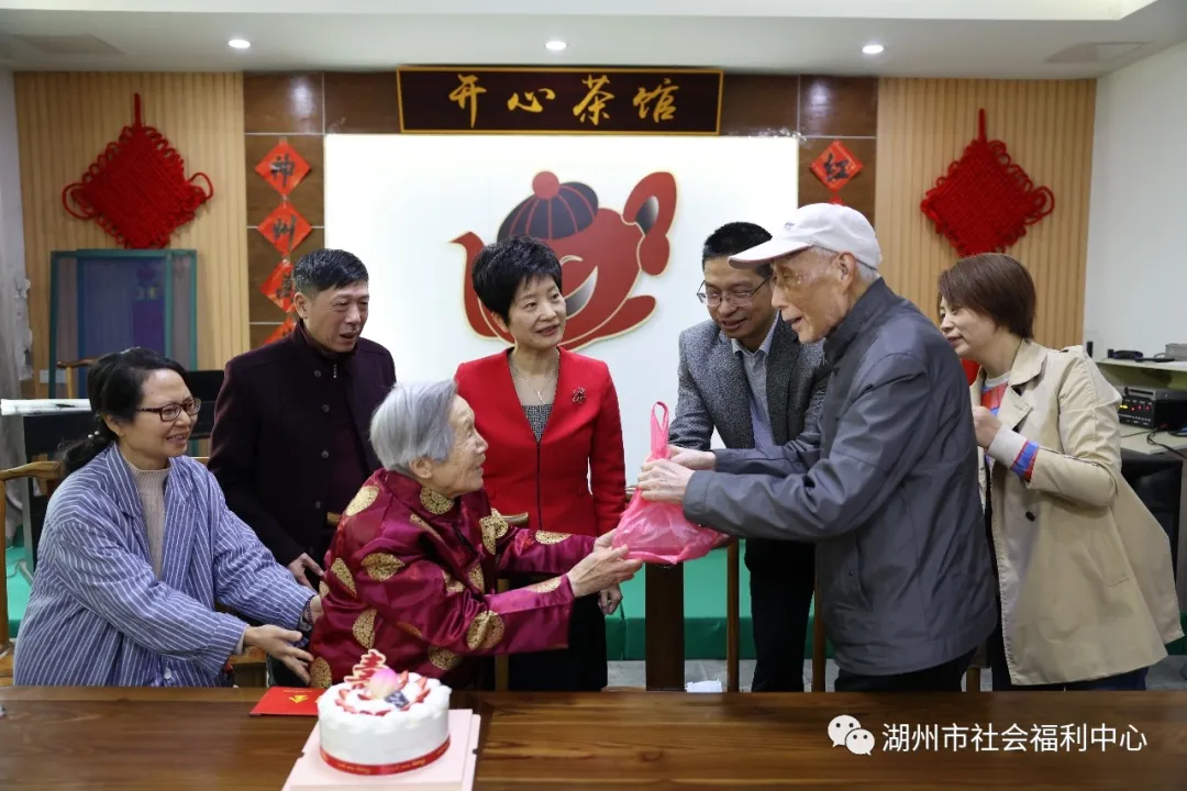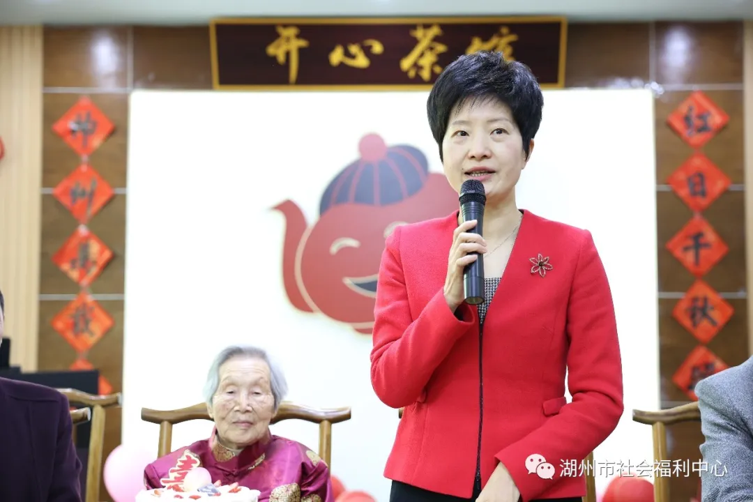| 4月6日上午,湖州市委老干部局和湖州市社會(huì)福利中心在開心茶館,為老人凌敏舉辦了百歲生日祝壽會(huì)。湖州市委老干部局局長(zhǎng)夏冰、服務(wù)管理處處長(zhǎng)劉慧,福利中心董事長(zhǎng)徐俊揚(yáng)、常務(wù)副總經(jīng)理袁永健、副總經(jīng)理王穎和中心離休老干部代表們參加了此次祝壽會(huì)。