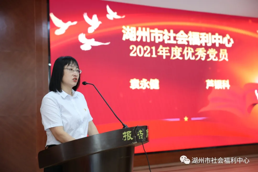 湖州市社會(huì)福利中心召開(kāi) 紀(jì)念建黨100周年 暨優(yōu)秀黨員表彰大會(huì) 圖/文 沈霄旭 吳玉璽 6月22日下午,湖州市社會(huì)福利中心召開(kāi)紀(jì)念建黨100周年暨優(yōu)秀黨員表彰大會(huì)。福利中心領(lǐng)導(dǎo)班子成員、全體黨員及中層干部參加會(huì)議,金陵藥業(yè)黨委委員、工會(huì)主席、總裁助理張寧,湖州市產(chǎn)業(yè)投資發(fā)展集團(tuán)有限公司副總經(jīng)理吳媛華、王建強(qiáng)等領(lǐng)導(dǎo)出席。