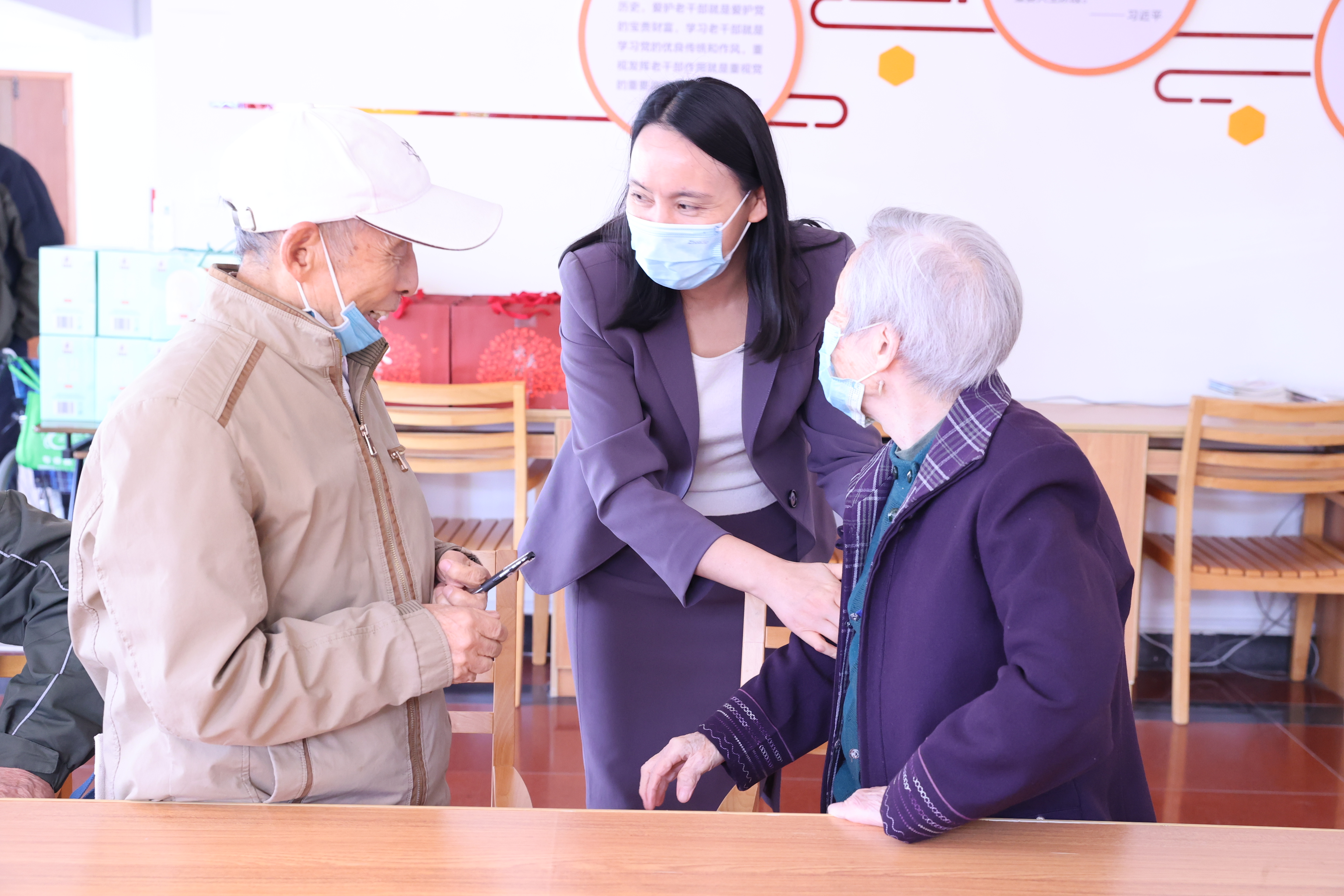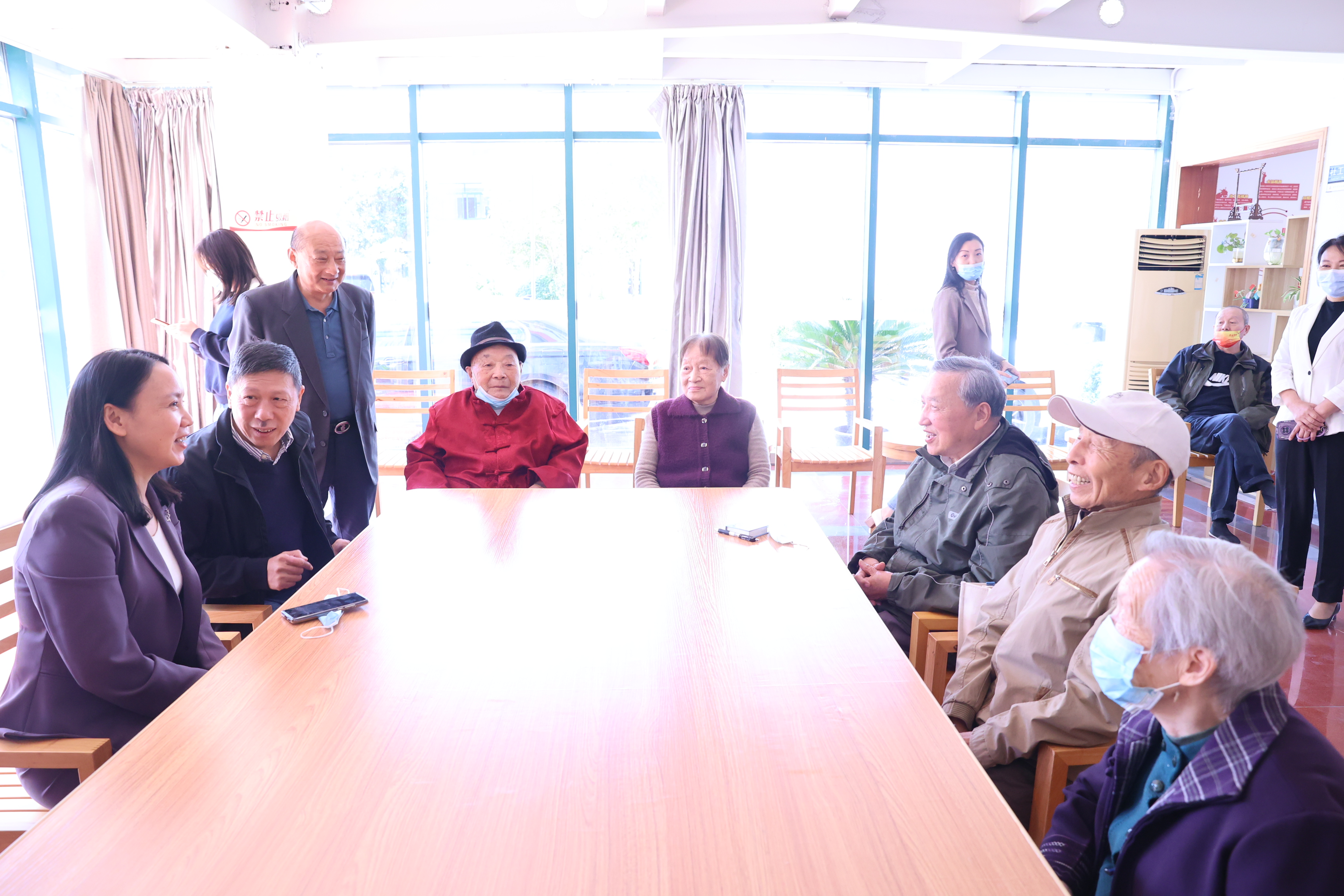 走過福利中心的“怡心小道”,阮副市長一行來到福利中心的“樂活驛站”,看望在此活動的康養(yǎng)長者,并和他們進行了座談。阮副市長親切詢問了康養(yǎng)長者的健康和生活情況?叼B(yǎng)長者對黨和政府全方位關(guān)愛老年人表示感謝,對福利中心的環(huán)境設(shè)施、醫(yī)療服務(wù)非常滿意,認為和在家里一樣,“只不過是換個地方養(yǎng)老”、“我在這里已住了九年了,非常舒服、非常適應(yīng)”。福利中心董事長徐俊揚向阮副市長介紹了“70歲學畫,100歲辦畫展”的老壽星凌敏、94歲的新四軍老干部馬淮平等康養(yǎng)長者,“在福利中心康養(yǎng)的老年人平均年齡達八十六、七,已有四位百歲壽星”。馬老還向阮副市長贈送了自己的一幅書法作品,阮副市長看到作品內(nèi)容后說“寫得真好,表達了一個老共產(chǎn)黨員的革命情懷,也是對我們的鼓勵和鞭策”。陪同走訪慰問的湖州市衛(wèi)健委主任饒如鋒對百歲壽星凌敏說“我們下次來,希望能看到您的新作品”,他還邀請老干部在黨的二十大召開后到基層單位進行宣講。吳興區(qū)政府副區(qū)長金斌斌、吳興區(qū)衛(wèi)健局局長陸建兵也陪同阮副市長到福利中心走訪慰問康養(yǎng)長者。
