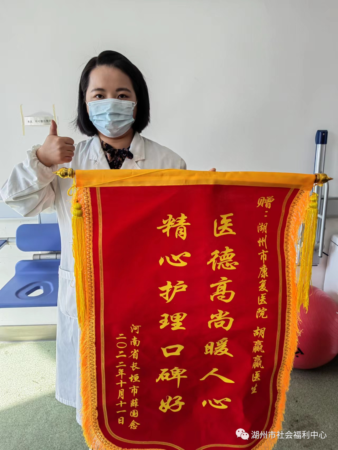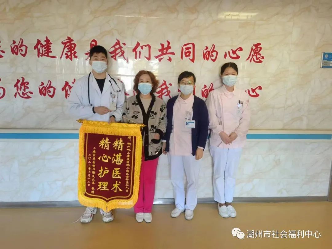 圖/文 徐德勝 近日,福利中心湖州康復(fù)醫(yī)院三病區(qū)醫(yī)護人員和康復(fù)科胡贏贏分別收到出院患者贈送的錦旗,喜慶黨的二十大勝利召開。